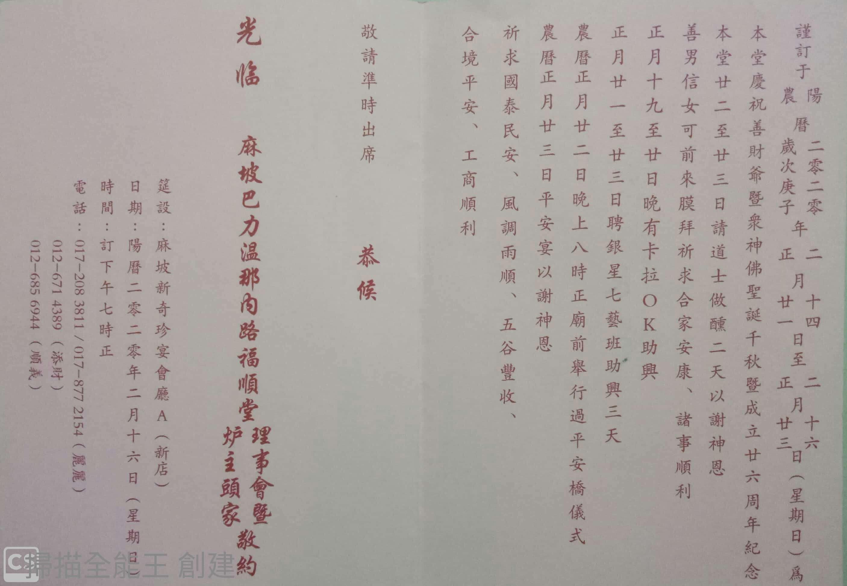 柔佛州麻坡巴力温那福順堂 © Copyright 2020 PERTUBUHAN PENGANUT AGAMA BUDDHA HOCK SOON TANG, MUAR, JOHOR. All rights reserved. 社团注册 : 0167-12-JHR VISITOR HITS: